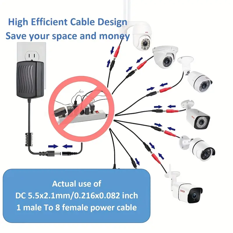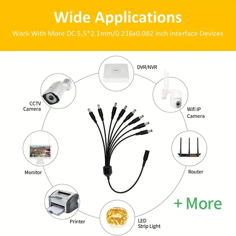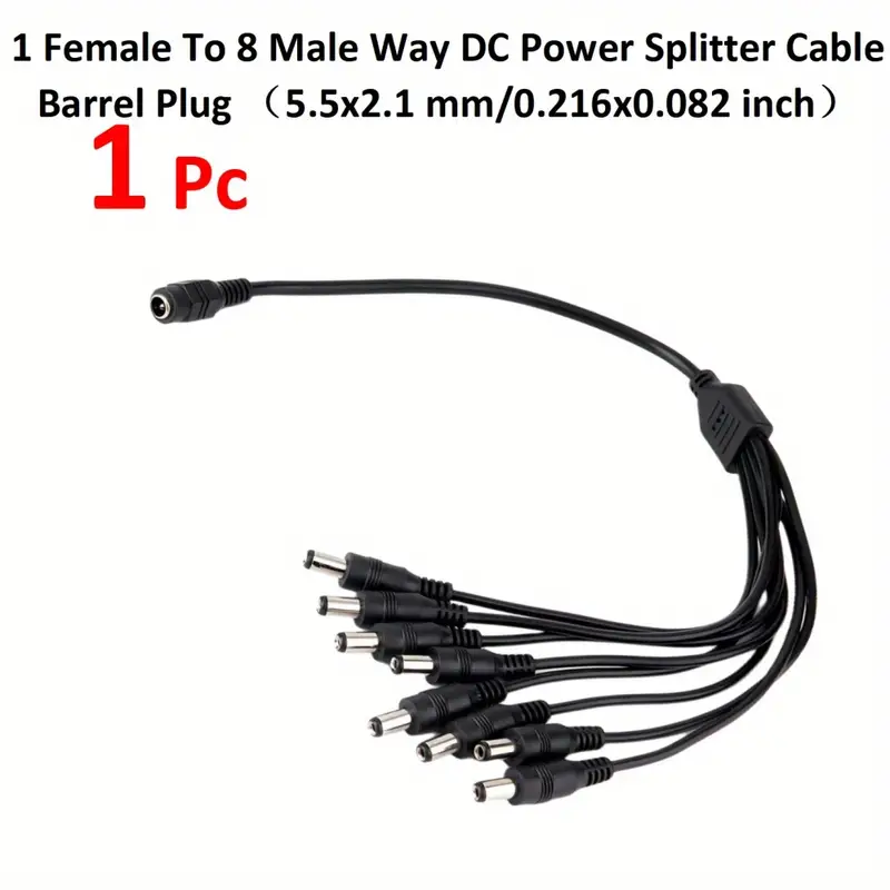 1 Female To 8 Male Way DC Power Splitter Cable, Barrel Plug 5.5x 2.1mm(0.216×0.082 Inch DC Power Extension Adapter Cable For CCTV Surveillance Cameras, Surveillance Routers,DVR,LED Light Strip And More