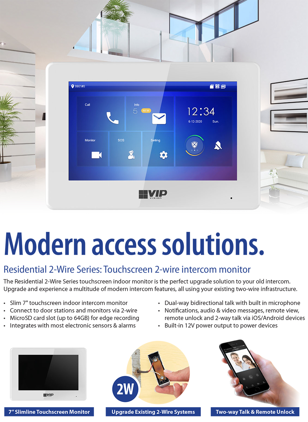 VIP Vision Touchscreen 2-Wire Residential Series IP Intercom Monitor (White) – INTIPMON2W2